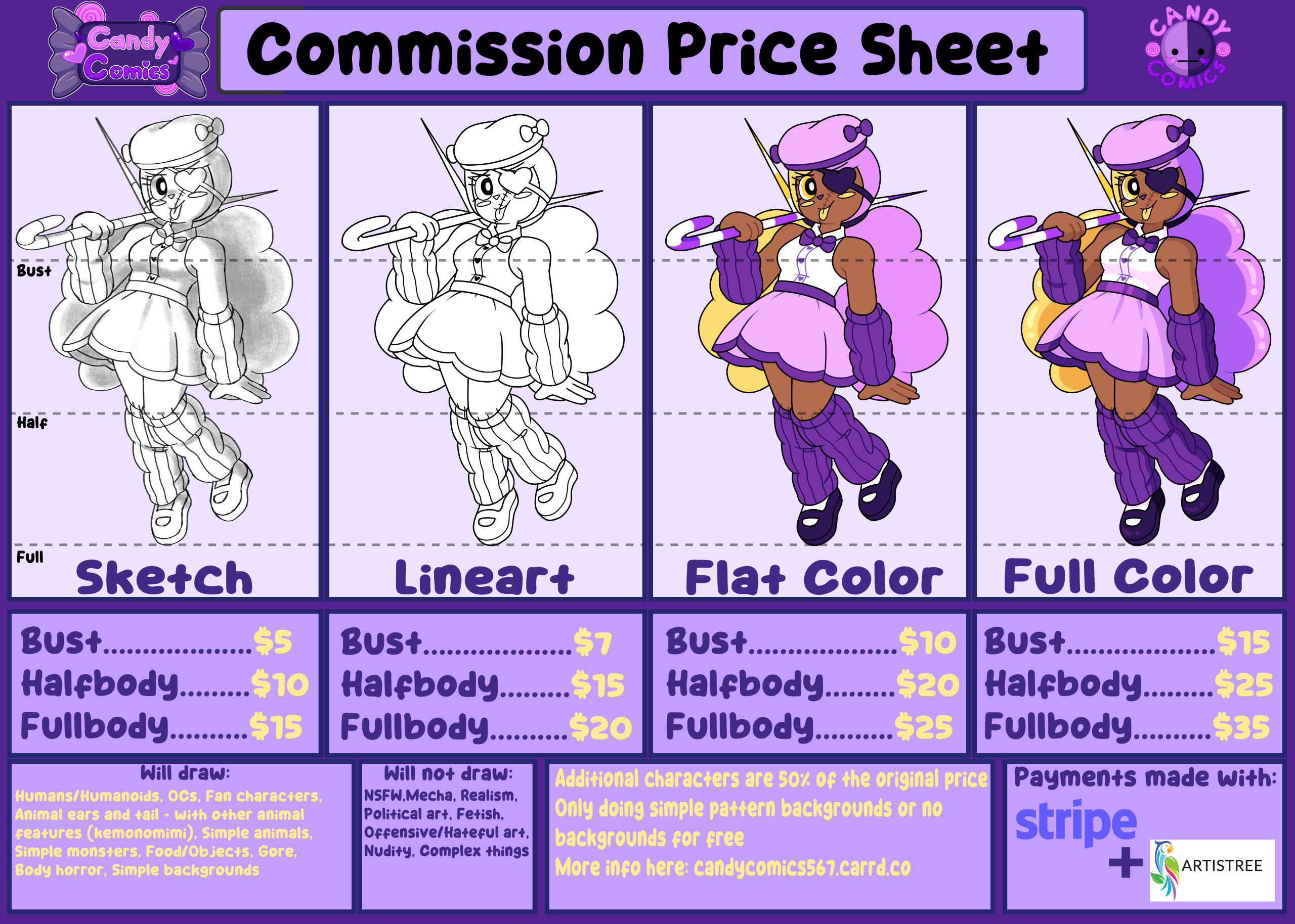 Commissions can be paid either 100% upfront, or 100% after the final rough sketch.